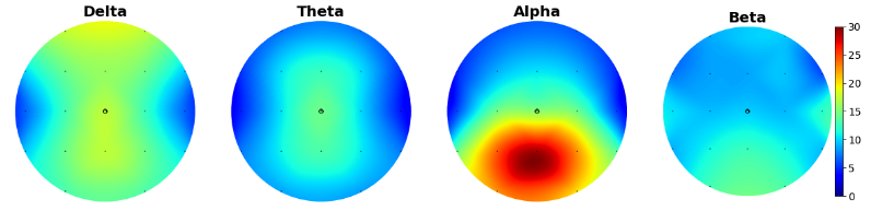 As the brain matures, brain frequencies measured by EEG are found to decrease, which is supported by literature2. Our results align with this as age was a topmost optimal feature: theta and delta bands are represented in the most important features that are age correlated. The dataset and preprocessing code can be found at the Brainclinics Foundation. The training modules for this project were provided by the Brainhack School.