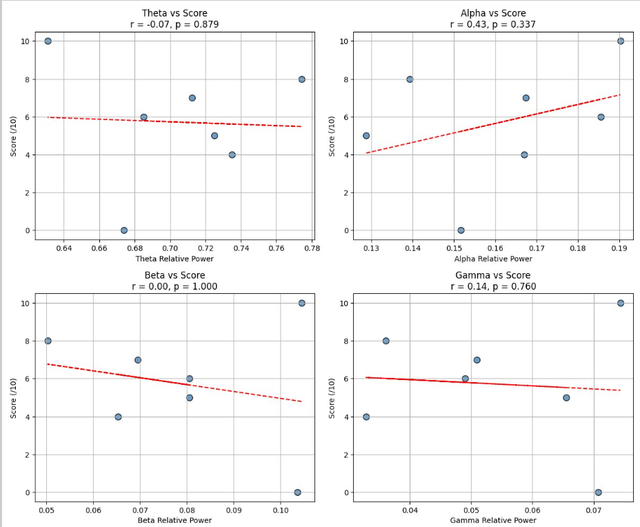 Figure 1. Correlation between EEG power bands and score