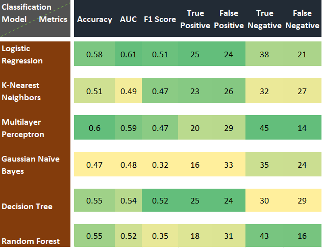 - Predictive models with evaluation metrics
