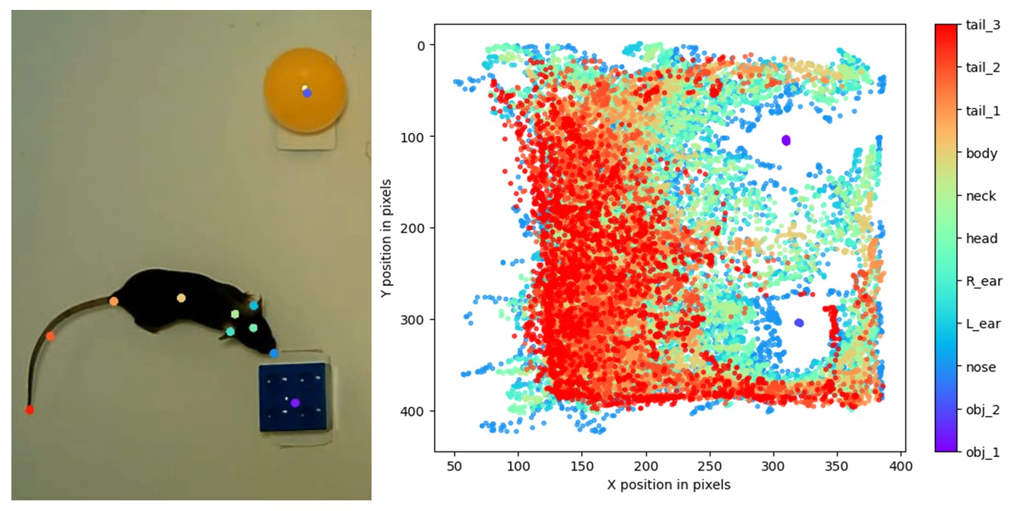 We worked on videos obtained with C57 mice during a Novel Object Recognition experiment developed at IFIBYNE - UBA, CONICET. The videos were first processed by DeepLabCut pose estimation software.