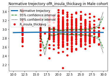 Normative modelling is known from growth charts, where it describes height in form of an individualized z-score/percentile score of deviation from the norm. Similarly, normative models can be used in neuroimaging to describe an individual’s deviation from a the normative variation of a brain measure, for example from cortical thickness.